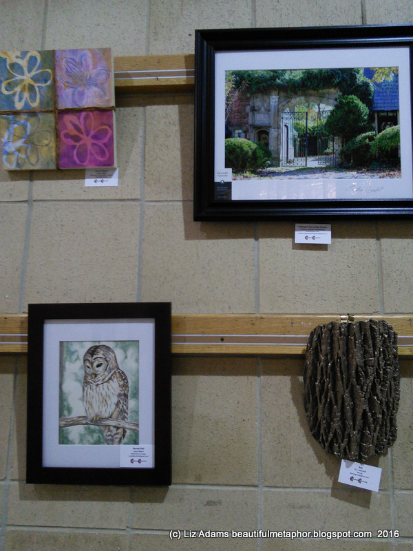 It's open all the hours the library is open, and you see it right where you enter. Hung alongside the artworks is a catalog of prices, titles and artist bios. For directions, and opening hours, go here